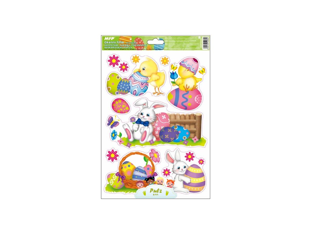 Okenní fólie velikonoční kuřátka, vajíčka, motýlci, zajíčci. Oslavte svátky jara s těmito krásnými samolepkami na okno. Vytvoří Vám kouzelnou velikonoční atmosféru.