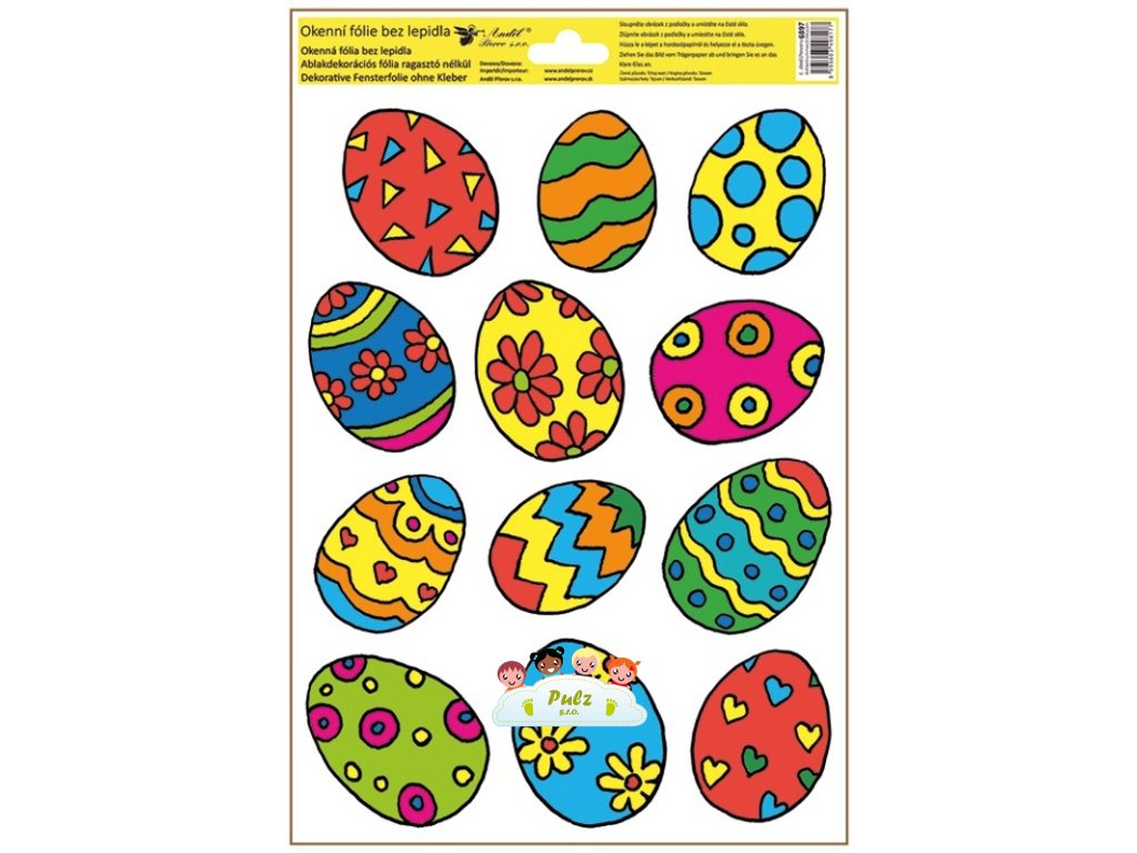 Okenní fólie barevná, velikonoční vajíčka 20 x 30 cm.