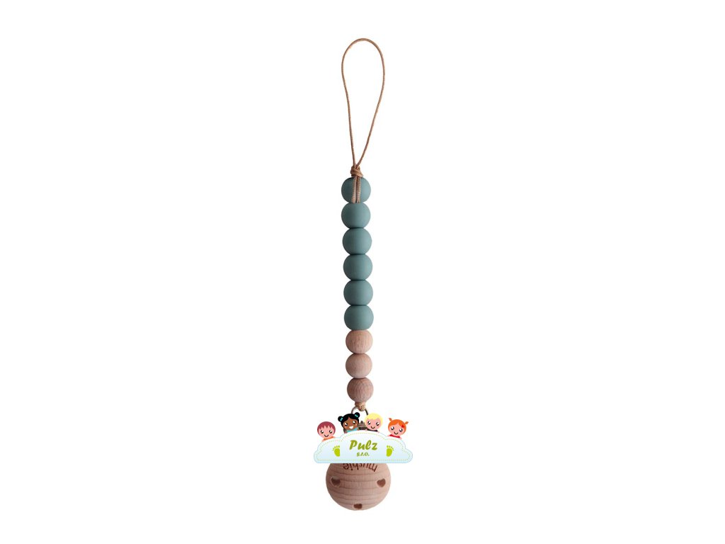Barevné silikonové korálky jsou vyrobeny ze 100% potravinářského silikonu, který neobsahuje BPA a ani jiné toxiny. Dřevěné korálky jsou vyrobeny z čistého přírodního dřeva bez jakéhokoliv dalšího chemického ošetření. Kovová část klipu je bez obsahu niklu a olova.