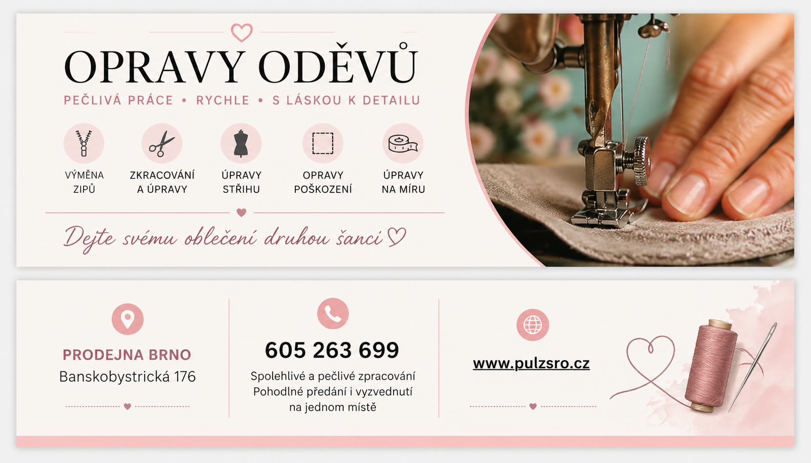 Opravy oděvů, výměna zipů atd.. - Banskobystrická 176, Brno Řečkovice