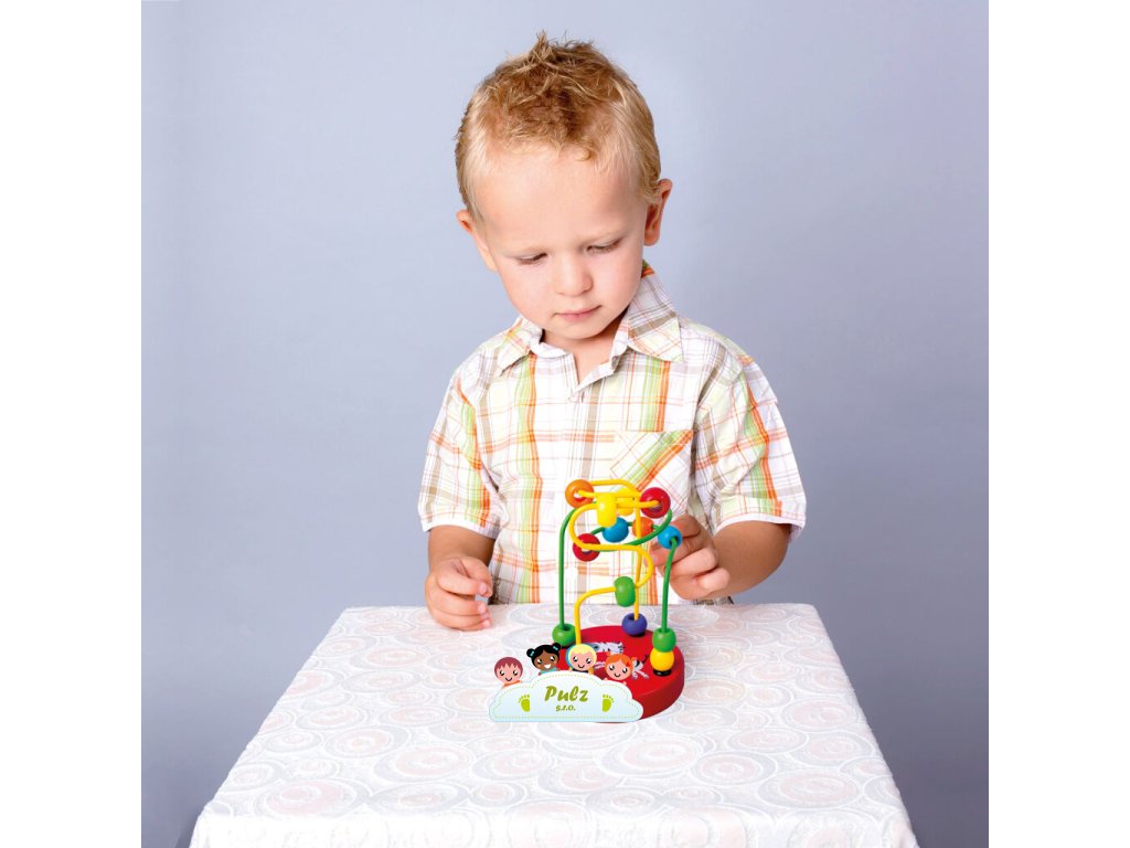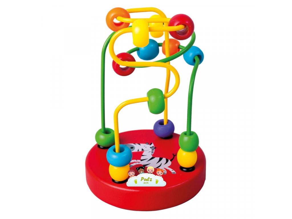 Motorický labyrint s několika barevnými korálky. Malá, praktická hračka rozvíjející motorické dovednosti, vhodná pro zabavení dítěte na cestách nebo jako suvenýr či malý dárek k narozeninám.