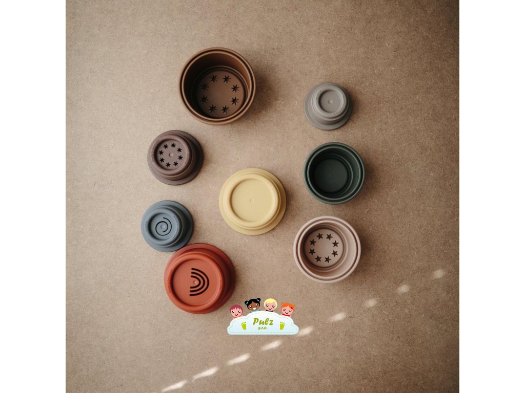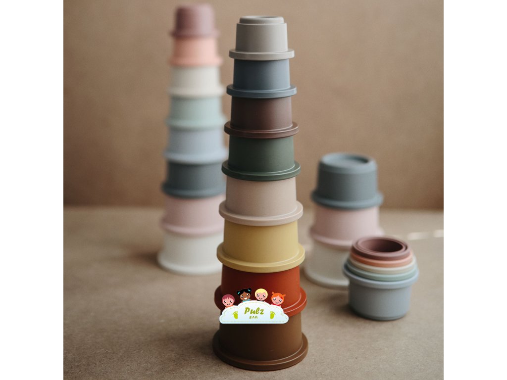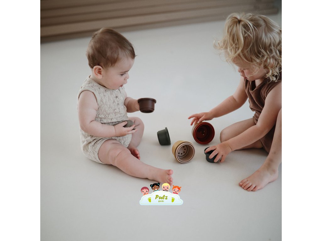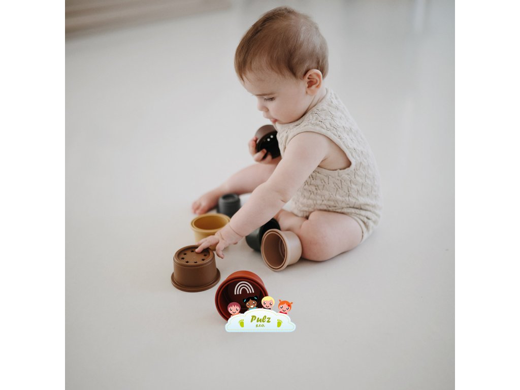 Při hře se skládacími pohárky se fantazii meze nekladou. Dají se použít i jako formičky do písku nebo hračka do vody díky různým otvorem pro protékaní vody.
