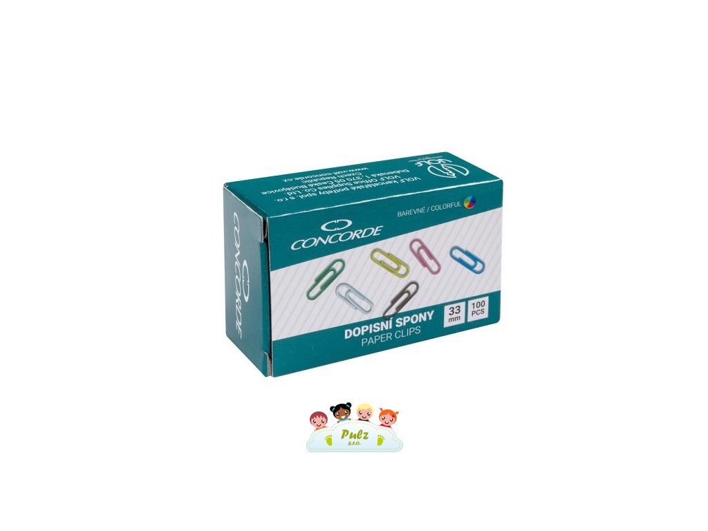 Dopisní spony CONCORDE 33mm, 100 ks, barevné