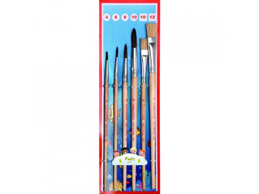 Sada kulatých a plochých štětců, obsahuje celkem 6 ks. Velikost štětců kulatý 4, 6, 8, 10 a plochý 10, 12.