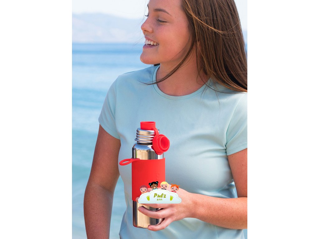 - Součástí je vyměnitelný barevný silikonový návlek na láhev pro lepší uchopení a izolaci.