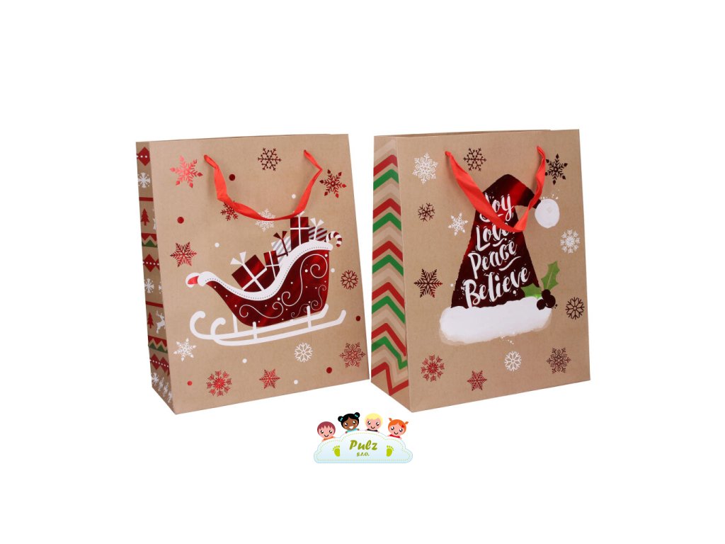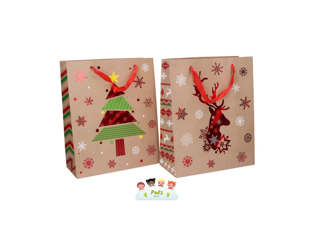 Potěšte rodinu a přátele hezkým dárkem na Vánoce ukrytým do papírové tašky. Vyberte si motiv, který se Vám líbí a může se balit. Velikost: M Rozměry: 26 (š) x 32 (v) x 10 (h) cm